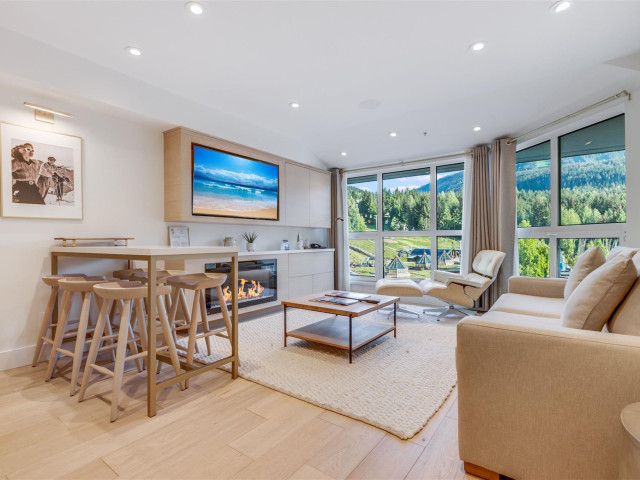 Offering one of THE BEST ski in / ski out residences on Blackcomb afforded by the Blackcomb Gondola right outside your backdoor, this fully renovated 1-bedroom, 2-bathroom nightly rental apartment features floor to ceiling windows with stunning views of Blackcomb Mountain. Meticulously maintained, updates were tastefully done through Domain Creative Design with full permits and final occupancy. The renovations include a full kitchen with Fischer & Paykel induction cook top and oven, Miele dishwasher, custom cabinetry, hardwood floors throughout, and beautifully renovated bathrooms with heated tile floors. After a great day on the mountains, come home and rejuvenate in the heated pool, relax in the large hot tub, or workout in the well-appointed private gym. Après options are near endless, with nearby options including Merlins, RMU, Fairmont Chateau & Four Seasons restaurants, Nagomi Sushi and a wide variety of shops and year-round activities to choose from at this unparalleled location. Whistler’s main village is accessible via the complementary shuttle or a 10-minute walk. Ownership comes with 2 parking passes, and dedicated ski and bike storage. An exceptional opportunity for the discerning buyer.
