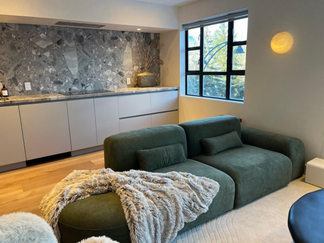Ready to own a piece of Whistler luxury? This isn't just a condo; it's a completely reimagined, top to-bottom custom suite in the heart of the village. Every detail of this 2-bed, 2-bath sophisticated residence has been meticulously upgraded, starting with the structural work that includes steel beams to open up the living space. We're talking new everything—electrical, plumbing, insulation, and even fireproofing. A brand-new HVAC system with A/C and an air exchanger keeps you comfortable year-round, all tucked away behind custom vents and trimless pod lights for a sleek, modern look. The finishes are what truly set this home apart. The walls are real lime plaster, the floors feature imported Italian Terrazzo stone, and the ceilings have been raised for an airy feel. You'll love the custom FENIX & oak cabinets and built-ins, the designer lighting, and the cozy Valor fireplace. Both bathrooms are tiled with Japanese designer stone, and the main one features a custom concrete sink. And yes, the bathrooms and entry have luxurious heated floors for those chilly mornings. A Whistler home isn't complete without a proper gear room. This one has a custom mudroom with porcelain floors, built-in storage for all your gear and a boot dryer to get you ready for your next day on the mountain. The location can't be beat. You're just steps from the grocery store, liquor store, and Whistler's best fine dining. Secure underground parking and an on-site hot tub. This suite was purpose built to excel at the highest luxury rental income potential in this central and desirable location in World class Whistler Village.