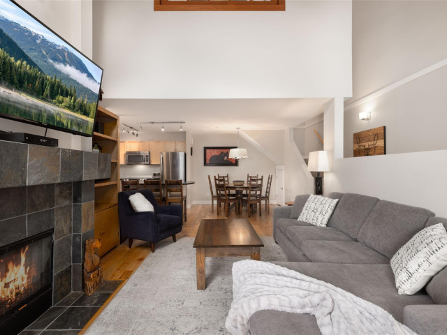 Mountain living meets modern luxury in Whistler’s coveted Blackcomb Benchlands with this beautiful 3 level, 3 bedroom townhome in The Villas at Snowberry. Steps from Lost Lake Park, Blackcomb Mountain, and the Fairmont Chateau golf course, this updated home offers comfort and convenience. The open floor plan features a welcoming living room with a wood burning fireplace and vaulted ceilings, perfect for relaxing after a day of adventure. With one bedroom on the main level and two above, there is plenty of space for family and guests. A private balcony with mountain views and access to the Valley Trail system complete the package. Short term rentals are permitted, adding excellent income potential when not in use.