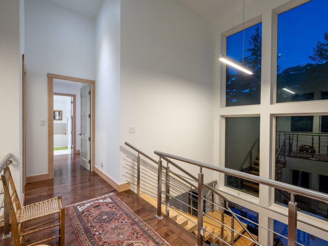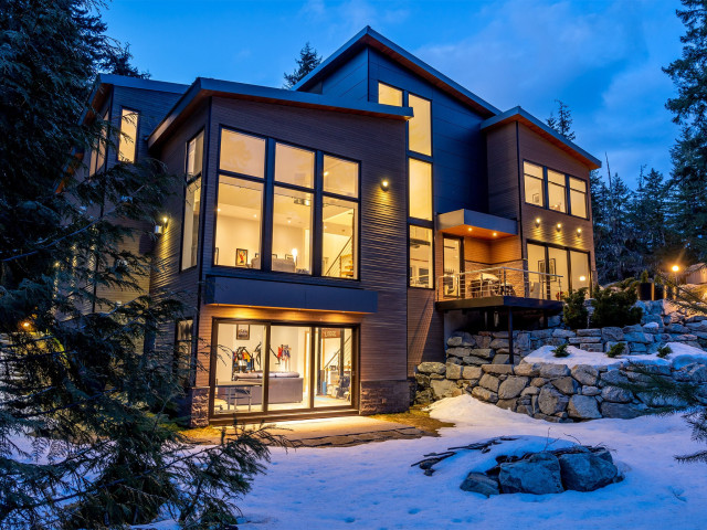 Tucked at the end of a long, forested driveway on over an acre of land, 5221 Jordan Lane offers rare privacy, luxurious finishes, and a true connection to Whistler’s natural surroundings. Adjacent to protected Strata acreage and Alpha Lake Park, this architectural gem enjoys all-day sun and breathtaking views of Whistler Mountain from nearly every room. Built with high-performing, energy-efficient metal frame construction, the home features a standing seam metal roof, Noble exterior siding of stone, cedar, and Swiss Pearl porcelain, Together With MARVIN Architect Series windows & doors. Inside, a spacious open-plan main level invites entertaining with a designer Thermador kitchen, Blum cabinetry, clever pantry storage, and multiple sliding doors leading out to a beautifully landscaped patio with hot tub and cozy outdoor reading retreat. The bright, south-facing living and dining areas are tastefully furnished and offer a seamless indoor/outdoor living experience. Upstairs, the primary suite impresses with dual ensuite bathrooms, while three additional spacious bedrooms sit across a sunlit catwalk. Downstairs offers a flexible media room/dorm/home office with full bathroom. Plus a double garage with workshop, integrated storage, and a mechanical room housing top-of-the-line systems: Bosch dual on-demand hot water heaters, ducted gas heating with A/C, central vac, air exchanger, and full fire suppression system. Additional perks include in-floor heated ceramic tiles, Bluetooth-integrated sound, heated towel racks, and nightly rental zoning. Just a short walk to the Creekside gondola, Valley Trail, Nita and Alta Lakes – and VIP perks at Nita Lake Lodge via the strata (shuttle, bikes, water sports, spa & dining discounts). This is Whistler living at its finest.