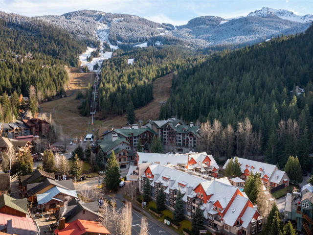 Discover this stunningly renovated Creekside retreat, just steps from the gondola. The gourmet kitchen is a showpiece with dramatic stone counters & premium appliances, complemented by a cozy stone fireplace in the living area with radiant in floor heating throughout. This ground-floor unit offers a private walk-out patio opening to a quiet courtyard, perfect for any season. After a day on the mountain, relax in the year-round outdoor pool and hot tub. With Phase 1 zoning permitting nightly rentals and unlimited owner use, this is a superb turn-key investment and the ultimate Whistler getaway.
