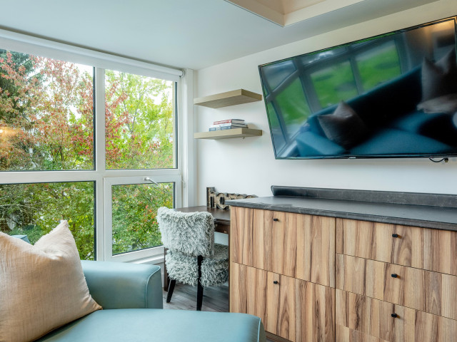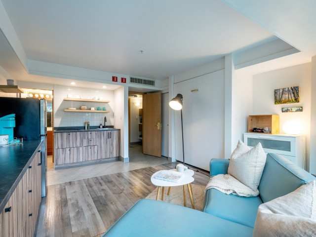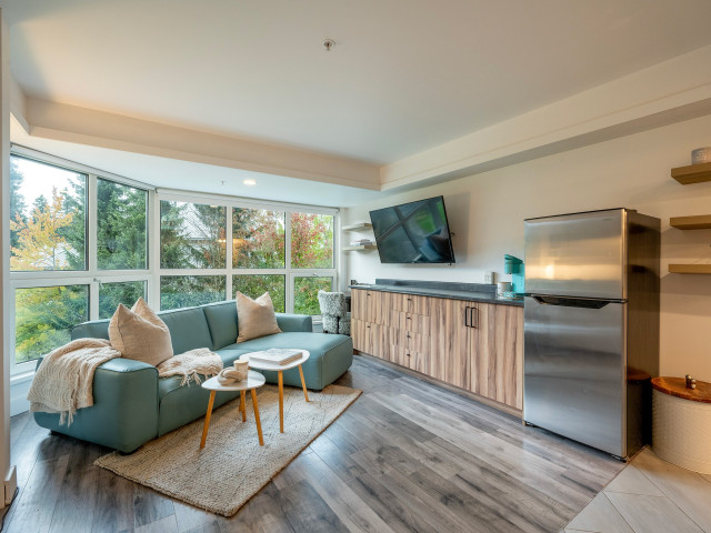 Best of slope-side living at Le Chamois. Perfectly positioned at the base of Blackcomb Gondola, this spacious 1-bedroom + Murphy bed, 2-bathroom suite offers ski-in/ski-out access and a bright, modern interior. The open layout features large windows that frame forest views, while thoughtful updates create a fresh, inviting feel. With two parking spots, convenient bike and ski storage, and concrete construction for quiet comfort, every detail supports easy mountain living. Enjoy restaurants, shops, and the Upper Village just steps away. Phase I zoning allows nightly rentals and personal use. GST not applicable.