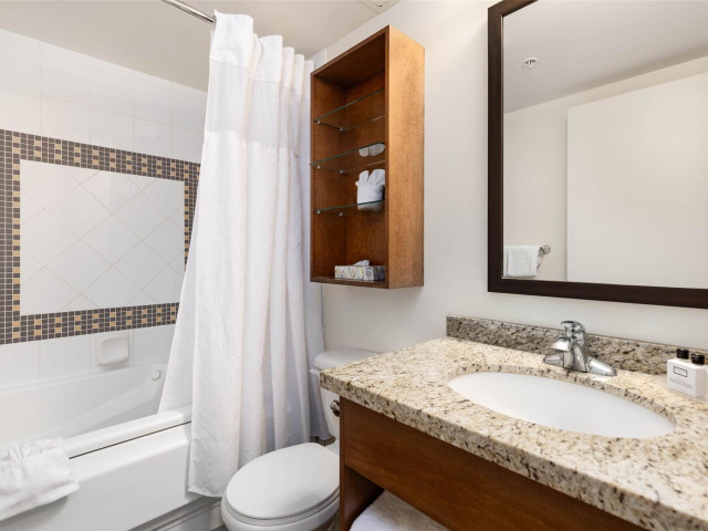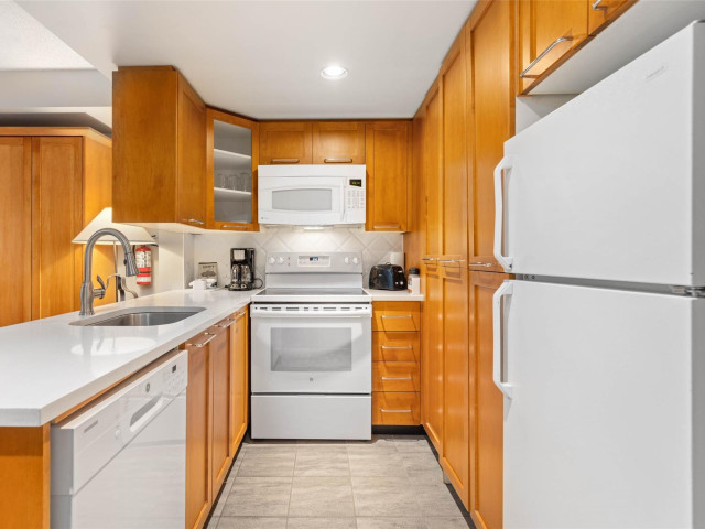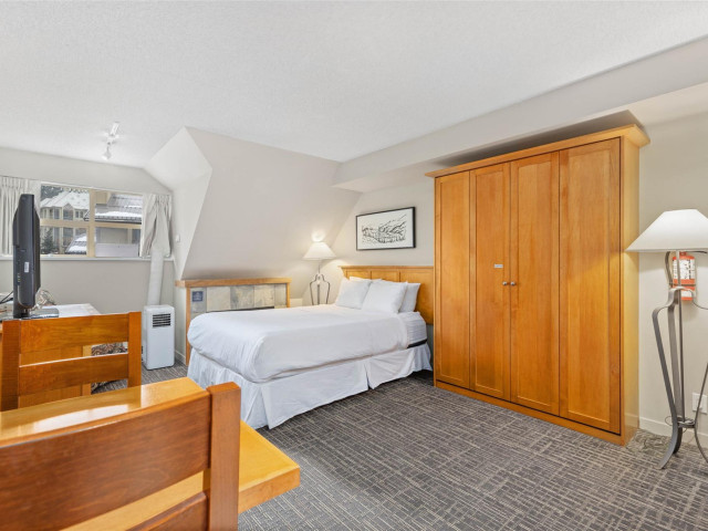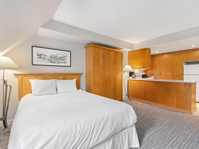 Located just steps from the gondolas, restaurants, and shopping, this deluxe studio suite at Whistler Peak Lodge offers the perfect mountain getaway in the heart of Whistler Village. Comfortably sleeping four, it features a queen bed and a double Murphy bed, plus a cozy gas fireplace for winter and air conditioning for summer. The full kitchen is equipped with everything you need, and the dining area makes mealtime easy. Relax in the jetted bathtub after a day on the mountain, and enjoy the convenience of an in-suite washer/dryer. Amenities include a fitness centre, ski/bike storage, and a 24-hour front desk. Phase 2 zoning allows owners to enjoy up to 56 days per year while earning rental revenue for the remainder of the time.