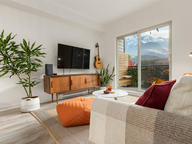 Jaw dropping views of Mt. Currie from this immaculate 1.5 bedroom condominium in one of Pemberton’s most desirable buildings. This bright, south-facing home offers a functional layout with a sleek, modern aesthetic. Enjoy the spacious private deck, perfect for relaxing or entertaining. Quality craftsmanship is evident throughout featuring high ceilings, large windows, and thoughtful design details. The Elements provides underground parking, a welcoming lobby, elevator, and ample storage. Conveniently located in the heart of Pemberton, just steps to all stores and amenities and only 25 minutes to Whistler.