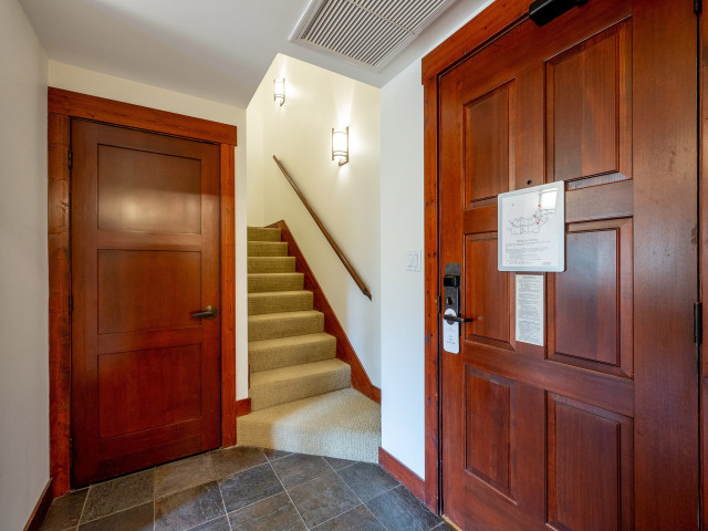Just steps from Creekside Gondola at the base of Whistler Mountain & the Olympic Downhill run, this luxurious one bedroom & den residence offers a unique floor plan split across two levels, merging convenient mountain access & luxurious living. Natural stone & warm wood finishes accent the open living area, featuring vaulted ceilings & an abundance of windows to relax in, while a large, covered deck provides an ideal spot to entertain any season. Take advantage of the many amenities offered at First Tracks Lodge including concierge, in-suite laundry, heated pool & hot tubs, gym, BBQ area, underground parking & large storage lockers; all within steps to Creekside shops, restaurants & Alpha Lake. Strata fees include hydro, cable, hot water, phone & internet. Nightly rentals permitted.