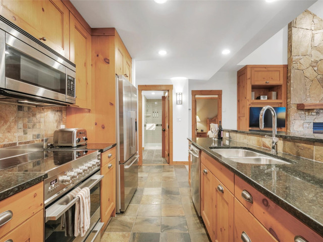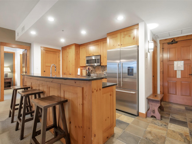 Ski-in/Ski-out from this fully furnished 2-bedroom, 2-bath condo in the coveted First Tracks Lodge. Enjoy two outdoor hot tubs, a pool, steam room, fitness room, bike storage, in-suite laundry, personal ski locker, and a spacious owner’s closet. South-facing with vaulted ceilings (8'–17'2") and panoramic mountain views, the open-concept living, dining, and kitchen areas receive plenty of natural light. Steps from the gondola for year-round adventure. Unlimited personal use with a full rental management program.