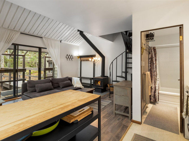 Welcome to Whistler Alpine Villa Ltd. This nicely updated 1-bedroom, 1.5-bathroom unit is the the best priced residential one bedroom on the market! Only a five minute walk to Creekside and all it has to offer; lakes, restaurants, coffee shops and the Creekside Gondola. Walk home from Après at Dustys! This unit features a wood burning fireplace, large balcony, primary with a custom king-sized bed and additional storage. Parking for two cars. Outside enjoy the many common areas that overlook Nita Lake. The monthly maintenance fee includes the owner's share of the yearly property taxes, exterior property maintenance & insurance, snow removal and on site caretaker. This property is a No short term or long term rentals are allowed. This is a "Corporate Share Purchase".