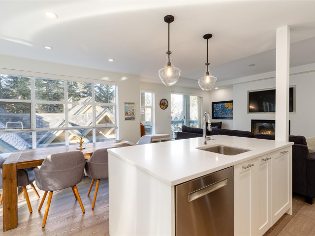 Welcome to 209 Snowbird, a beautifully renovated 2.5-bed, 2-bath townhome on the slopes of Blackcomb Mountain. This end unit blends modern elegance with mountain charm, featuring a bright open living area, gourmet kitchen, and cozy fireplace, with a fully permitted high end renovation. Enjoy four private decks, in-suite laundry, and underground parking for two with direct access. Ski directly home via nearby trails or take the complimentary village shuttle to the base and Whistler Village. In summer, stroll or bike to Lost Lake, the Upper Village, or Chateau Whistler Golf Course. Zoned Phase I for nightly rentals, Snowbird offers flexible personal use and excellent revenue potential. Shared hot tub, BBQ area, and secure ski/bike storage complete this ideal Whistler retreat.