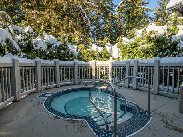 Beautifully updated and spacious 1-bedroom Treeline townhome, quietly situated on a private cul-de-sac in the Blackcomb Benchlands. Features heated slate floors, warm wood accents, wood-burning fireplace, and a large private patio with perfect for a BBQs overlooking a grassy yard. The kitchen includes solid pine cabinets, heated floors, and quality appliances. Treeline offers a ski-home trail, hot tub, secure underground parking with bike storage, and a private ski locker at the front door. Free public bus nearby. GST exempt.