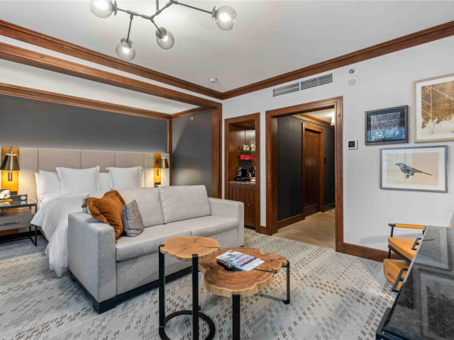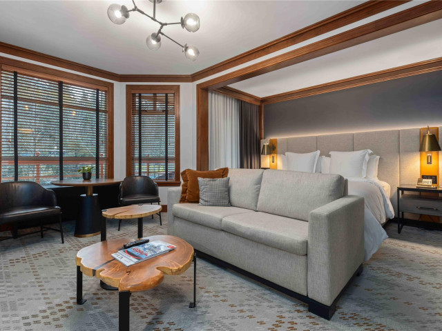 Enjoy all the amenities Four Seasons Resort Whistler has to offer at the base of Blackcomb Mountain. Recently renovated, experience quality furnishings synonymous with the Four Seasons branding, this luxurious king suite features a private balcony, gas fireplace and an oversized bathroom with deep soaker tub, perfect for recharging after a long day. Utilize the slope side ski concierge then relax at the spa & health club with outdoor heated pool and hot tubs or simply indulge at one of the onsite restaurants or après bars. Recognized as one of Whistler’s best revenue generators, this Phase II suite allows 28 days owner usage in the summer and 28 days in the winter. Rarely available side by side King Suites with connecting doors, ideal for families, especially with younger children.