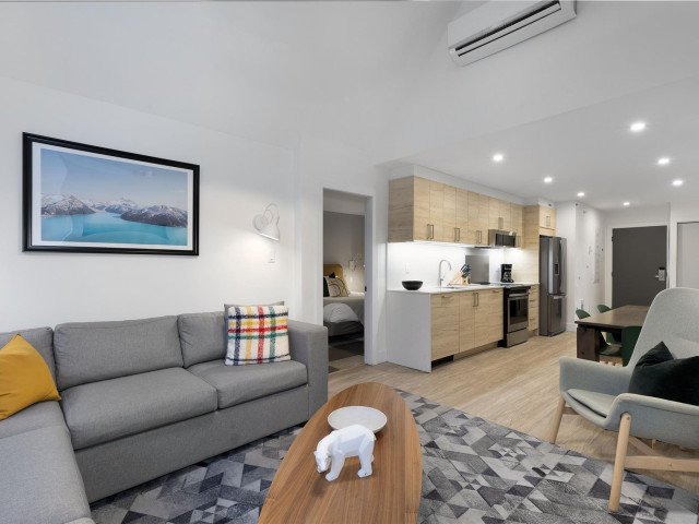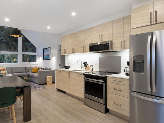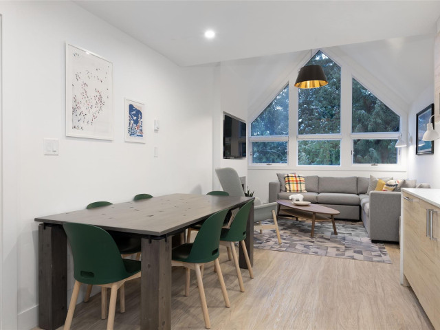 Experience elevated mountain living in a central village location with this bright and airy top-floor corner condo residence. This expansive 2 bedroom, 2 bathroom residence boasts vaulted ceilings, in-suite laundry and an intimate private balcony. The kitchen is fully-equipped and features stainless steel appliances. An exclusive owners’ lounge blends touches of home with extensive resort amenities. Relax fireside in the living room-style gathering space with entertainment, pool table and games, enhanced by a gym, rejuvenating sauna, heated outdoor pool, and terraces with stunning mountain views. Enjoy secure underground parking, storage locker, EV charging stations and a convenient bike and car wash bay while being steps to everything Whistler village has to offer.
