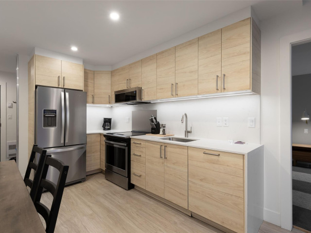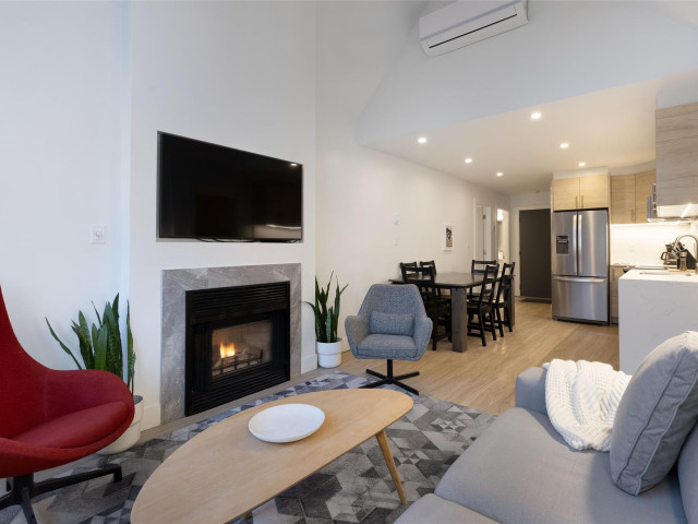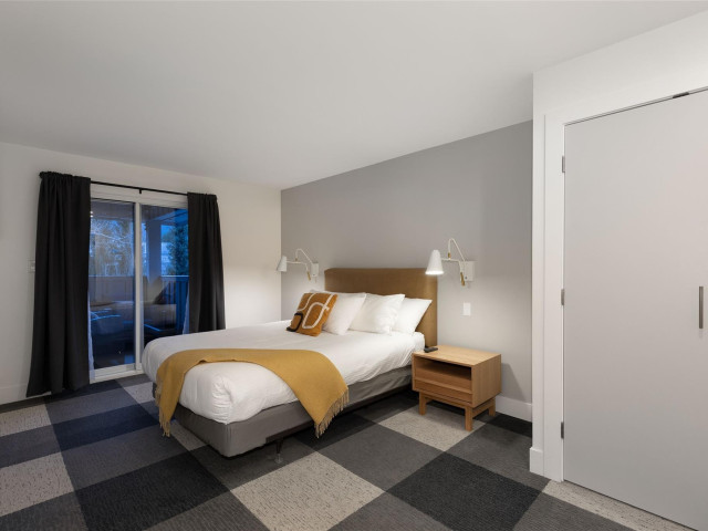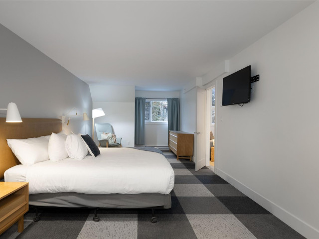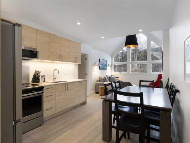 Ideally situated to access the vibrancy of Whistler Village, yet set back to offer a more peaceful residential atmosphere, this refined 2-bedroom, 2-bathroom residence delivers elevated mountain living. Ski run views and vaulted ceilings enhance the spacious interior, complemented by renovated bathrooms, in-suite laundry, and a private balcony. The turnkey kitchen balances timeless design with everyday functionality. Set within a residentially zoned building, the environment is quiet and established, with significant capital investment already completed for ease of ownership. Residents enjoy a private owners’ lounge, gym, sauna, heated outdoor pool, view terraces, two secure underground parking stalls, storage locker, EV charging, and bike and car wash bay, all just steps to Whistler Village.