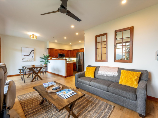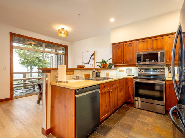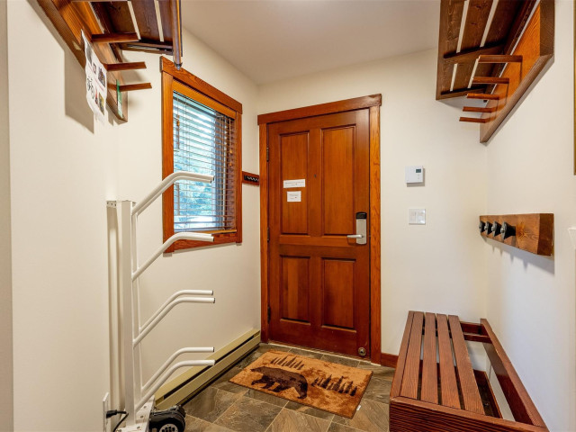 Experience true slope-side living in this beautifully updated two-bedroom ski-in/ski-out townhome, located just steps from the legendary Dave Murray Downhill on Whistler Mountain. On powder days, you’ll feel like a VIP stepping outside your door and enjoying an untouched run straight to the Creekside Gondola, scoring first tracks before the rest of the mountain wakes up! It’s a rare and exciting way to start the day. Inside, the home is bathed in natural light and thoughtfully designed for effortless mountain living. Warm wood accents, a cozy gas fireplace, and a functional single-level layout create a welcoming alpine retreat. The chef’s kitchen features stainless steel appliances, while the spa-inspired ensuite offers a calming escape after a day on the slopes. Take in expansive mountain and valley views from the comfort of your home or unwind in the Bluff’s hot tub, après-ski at its best. Flexible zoning allows for unlimited owner use or excellent rental income potential, perfectly balancing lifestyle and investment. Powder turns to the gondola. Hot tub après-ski. Panoramic valley views. Welcome to #4 at The Bluffs. Reach out today for a private viewing.