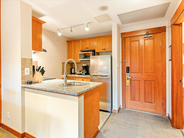 Phase II property at Whistler center location. Owner can use up to 28 days in summer phase and 28 days in winter phase. Nightly rental allowed but has to be managed by the hotel management company. Room has a full kitchen, one King size bed in the bedroom, and one queen size pull-out sofa bed in the living room. Building provides one complimentary underground parking spot for owner use and one ski locker. This hotel generated top rental in Whistler for the owners, not mention the steps distance to the gondolas, trails, commercials, transportations and everything else this No.1 ski resort in North America offers.