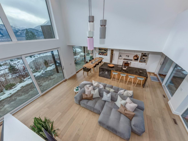 Experience elevated living at The Ridge in this BC Step Code 5 home, built by Balmoral Construction in 2020. Perched on a quiet cul-de-sac with breathtaking views of Mt. Currie and the Pemberton Valley, this residence offers 4 bedrooms, 3.5 baths, a media room, kids’ lounge, gym, and home office. Every corner has been thoughtfully curated for effortless mountain living—full ICF construction to the roof (energy efficient, durable, soundproof), triple-pane Innotech windows and doors, plug-and-play functionality, and natural materials harmonize beautifully with the surrounding forest and mountain backdrop. Craftsmanship shines in custom millwork, white oak hardwood floors, and premium Gaggenau, Sub-Zero, and Thermador appliances. The kitchen is a chef’s dream, anchored by a striking granite waterfall countertop, built-in wine fridge, and expansive windows and sliding doors that fill the open-plan living area with abundant light beneath soaring vaulted ceilings. Cozy up by the Fire-Orb suspended ethanol fireplace on a snowy winter day, blending practicality with elegance and creating a true statement space for entertaining. Comfort meets performance with a backup generator and high-efficiency heat pump. The low maintenance, non-combustible exterior ensures lasting durability. The garage is an adventurer’s delight, providing an organized space and gear room for all your favorite mountain toys—grab and go in no time, because after all, there’s no time to waste when adventure awaits. Outdoors, the front BBQ and stone fireplace invite seamless indoor/outdoor living, immersing you fully in the mountains. The rear fenced backyard provides kids and pets a safe place to play, while the hot tub invites you to unwind, backing onto a natural rocky contour and forest for private relaxation. Mature irrigated landscaping adds to the serene setting. Ideal for family life, hosting with ease, meaningful connection, and endless mountain adventures.