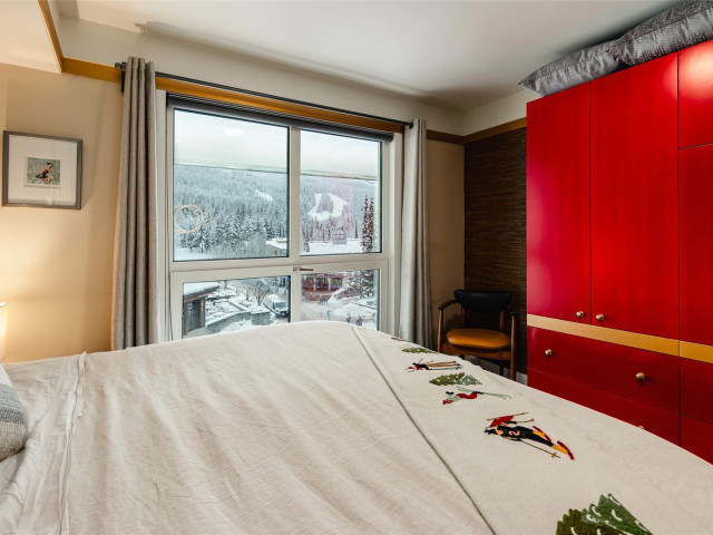 Perfectly located at the base of Blackcomb Mountain, this luxurious ski-in/ski-out residence offers direct, unobstructed views of the mountains, gondola, and Upper Village stroll from every window. A rare one-bedroom with private laundry, it features full, symmetrical living room windows which add balance and light - an uncommon detail in the building. Situated on the coveted 4th level, the highest and most sought-after floor for smaller units, this beautifully updated home benefits from Phase 1 nightly rental zoning, exceptional revenue history, and unlimited personal use. Enjoy resort-style amenities including a pool, hot tub, and gym—an elegant alpine retreat and investment.