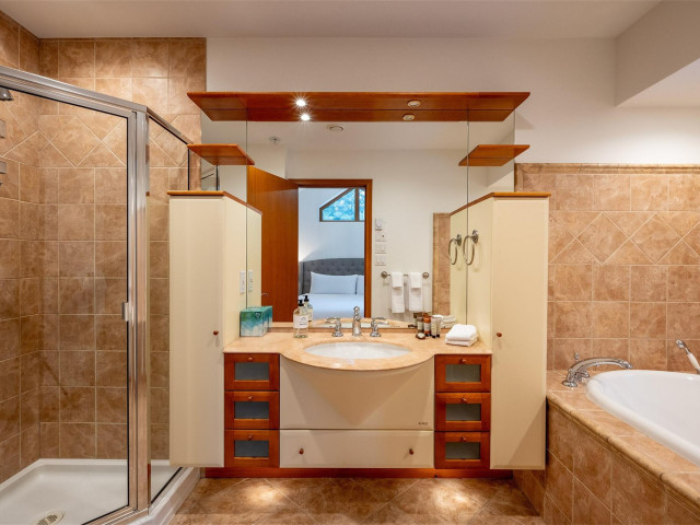 Welcome to this Craig Chevalier designed Whistler chalet offering a rare turnkey pension opportunity. Renovated and rebranded in 2024 with all permits in place, the property operates successfully as a destination retreat and benefits from TP-4 zoning, allowing nightly rentals. Set on a 0.265-acre corner lot with mountain views, the home includes 8 guest rooms plus a separate two-bedroom caretaker suite. Each guest room features an ensuite bathroom and private balcony, ideal for groups and retreats. Features include a spacious kitchen, hot water on demand, air conditioning, multiple fireplaces, and a covered outdoor hot tub. A three-car garage with EV charging and ample parking add convenience. Located steps from Alta Lake and minutes to Whistler Village, ski lifts, golf, and trails.
