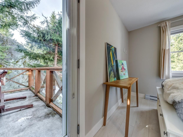 Welcome to this light-filled end-unit townhome in sought-after Castle Estates, perfectly positioned between Whistler Village and Creekside. Set in a private location on a quiet cul-de-sac and backing onto serene forest, the home also features a lovely outdoor garden and a direct walkway out back to Whistler Road, offering easy walking access to Creekside. The thoughtfully designed two-level layout includes an upstairs bedroom, plus an upper main living area with vaulted ceilings, an open-concept kitchen and living space, a full bathroom, and two decks ideal for outdoor enjoyment. The entry level offers an additional bedroom, ensuite with steam shower, a private patio, laundry, and a fully upgraded garage with new flooring, storage cabinetry, and slatwall panels. A 2020 renovation introduced hardwood floors, custom tile and millwork and stainless steel appliances. Perfect for full-time living or a weekend retreat.