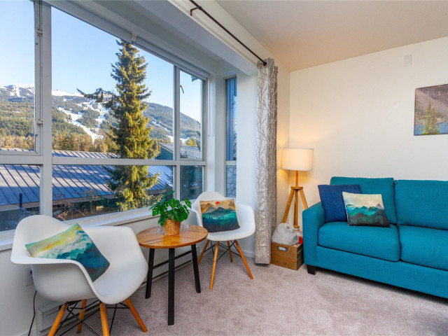 Welcome to 336 Town Plaza, a retreat in the heart of Whistler Village. Step off the Village Stroll and into your own peaceful sanctuary, perfectly positioned on the quiet side of the building with breathtaking, unobstructed views of Blackcomb Mountain. Flooded in natural light, the large windows frame the alpine scenery, creating a calm and inviting space to relax after a day in the mountains. The home has been tastefully updated with new carpet throughout, all-new stainless steel appliances, a new washer and dryer, new countertops, and fresh paint. A custom luxury sofa and tasteful mountain decor complete this turn-key residence, ready for immediate enjoyment. Town Plaza also offers a newly updated hot tub and gym, both nearing completion and conveniently located within the building. Zoned for nightly rentals and unlimited personal use, Town Plaza is one of the best revenue-generating buildings in Whistler, making this the ultimate Whistler investment + personal use mountain getaway.