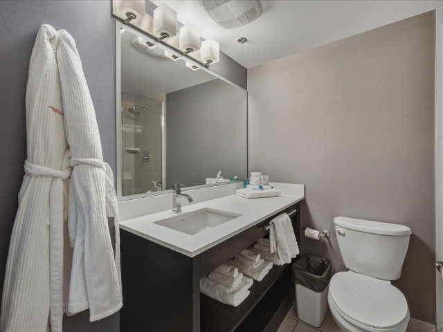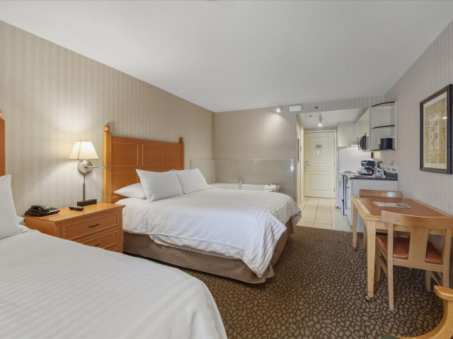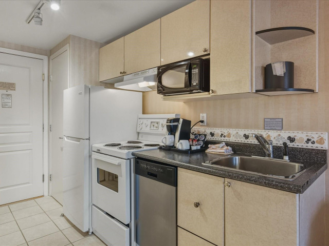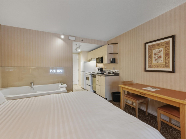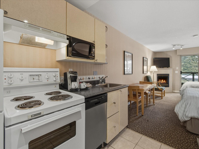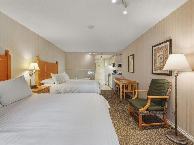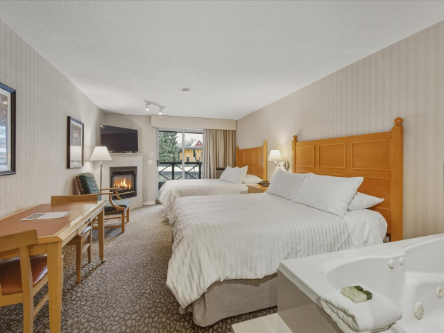 #203 at the Pinnacle Hotel Whistler Village is a stylish 353 sq ft studio suite with two plush queen beds and amazing views of Blackcomb Mountain from the covered deck. Designed for personal comfort and convenience in the heart of the village and investment return, your whole family can warm up by the gas fireplace, unwind in the whirlpool bathtub, or whip up a quick dinner in the fully equipped kitchen. Pinnacle is a popular boutique hotel with outdoor pool & hot tub, pet friendly rooms, u/ground parking, ski shuttle (or easy walking distance to lifts) with on-site gourmet restaurants, cafes plus access to everything you'd expect in Whistler - a world-class ski resort.