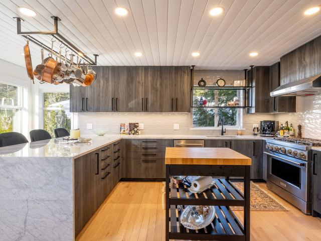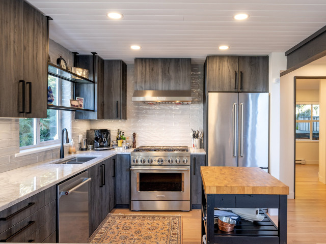 Walk in and you immediately feel it. This is a home that’s been cared for, upgraded, and enjoyed. Vaulted ceilings open up the main living space while natural light pours in, giving the room a calm, welcoming energy. The gas fireplace anchors the space, perfect for winter evenings after skiing or quiet nights when the snow starts to fall. The kitchen is the heart of the home and it shows. Fully custom from top to bottom, every detail was intentionally chosen — custom cabinetry, Carrera marble countertops, under-cabinet lighting, and carefully selected hardware that ties it all together. It’s both beautiful and practical, designed for real living, entertaining, and everyday comfort. Step outside and you’re surrounded by nature. A private, two-tiered deck creates a true outdoor retreat, complete with a hot tub tucked among mature fir trees and natural rock. It’s peaceful, private, and unmistakably Whistler — a place where mornings are quiet, evenings are relaxed, and time slows down just enough.