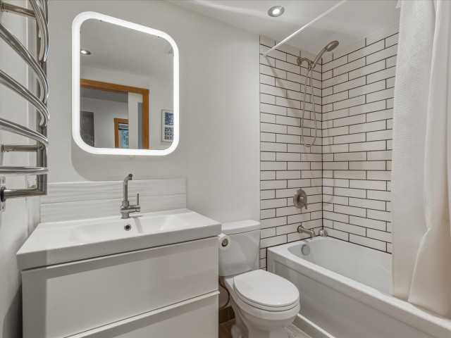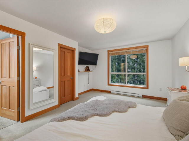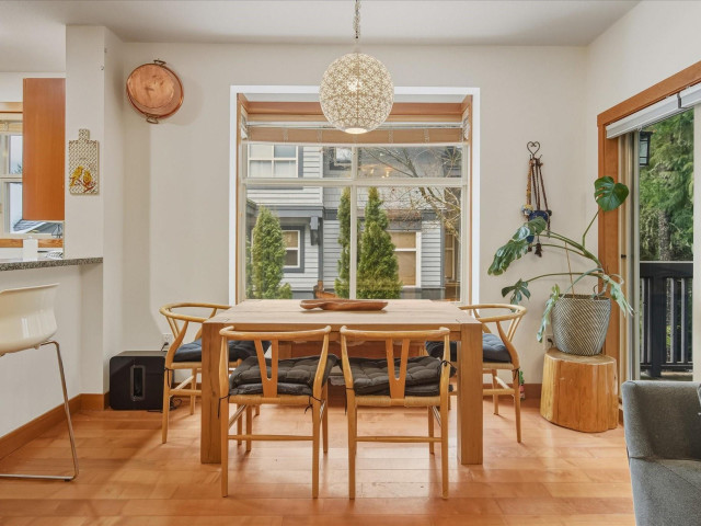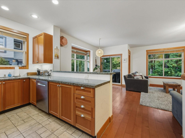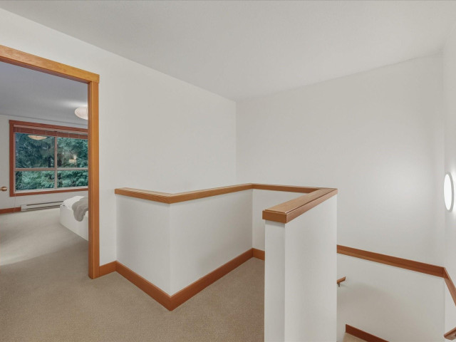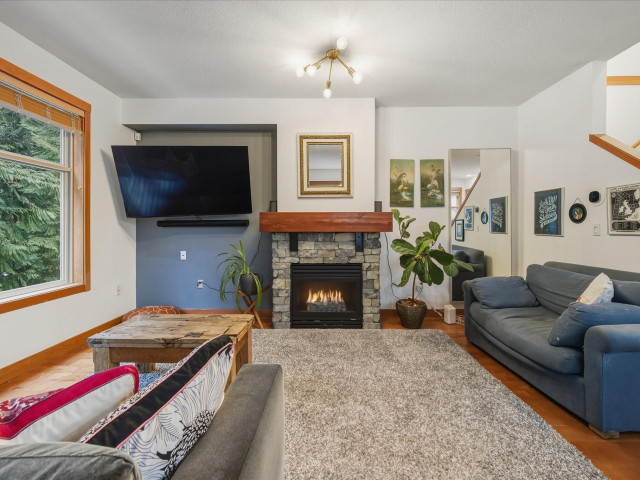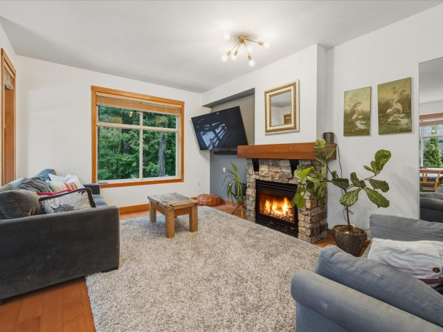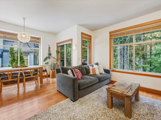 The Glades end unit; it doesn't get better than this. 4 beds + den, backing onto a private greenbelt in the quiet and picturesque Spring Creek neighbourhood. This property boasts updated appliances, ample light, a gas stove and fireplace, and is well known for its spacious rooms and peaceful setting. These common feel like single family homes, with large windows, 2 large patios (one fit with a hot tub) 2 car garage + so much storage! These end units are rarely available and one of a few!