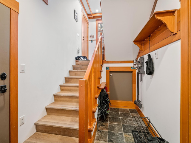 Located in the beautiful and quiet Nordic area, the Heights is a popular Ski-in / Ski-out location in Whistler. The solid log frame duplexed townhome features a wood burning slate fireplace, a private outdoor Hot Tub, and a spacious garage with plenty of storage. Unit 23 is facing south west, providing lots of sunlight all day with great views of the Tantalus Range from the living room and master bedroom. With three bedrooms and three bathrooms on 1,665 square feet plus double garage and storage, this updated townhouse creates a spacious and warm feel with its custom milled, edge grain fir accents and cherry hardwood flooring. The living area has high ceilings and an open design to the kitchen, which has granite counter tops and stainless-steel appliances. The zoning in this area allows for nightly rentals which offers plenty of flexibility of use depending on the particular needs to generate revenue or owner use. This property has GST paid.