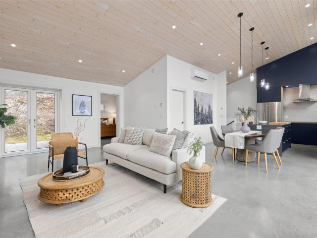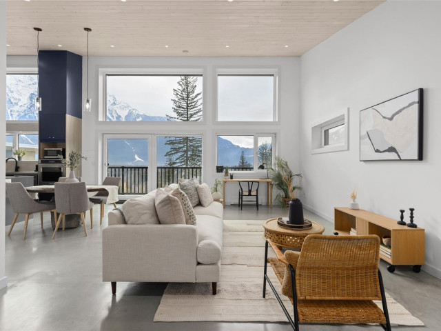 Modern Sunstone Home with Carriage House Suite Newly built in sought-after Sunstone, this sleek, minimalistic home offers clean lines, mountain views, and functional spaces. The main home features an open-concept living area with polished concrete floors, a designer kitchen with two-tone cabinetry and stainless appliances, and bright, spacious bedrooms with custom built-ins. Above the garage, a self-contained carriage house suite provides income potential, guest space, or a private office. Minutes to Pemberton Village and a short drive to Whistler.