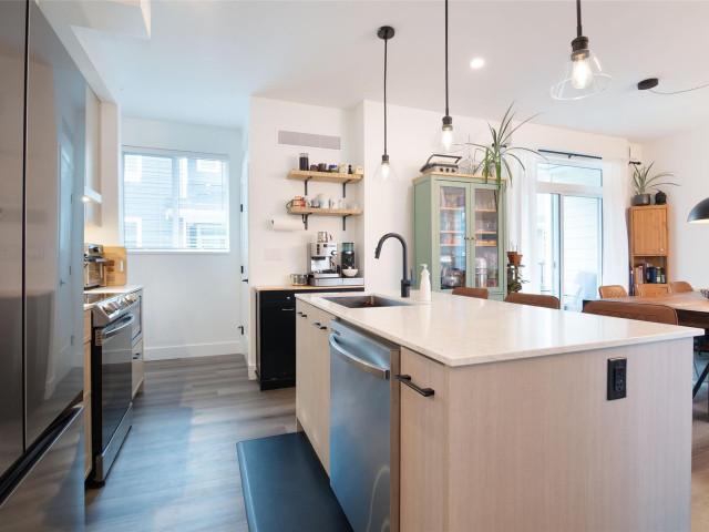This west-facing 3-bedroom, 2.5-bathroom end-unit townhome offers a blend of modern living, small-town charm, and year-round mountain adventure. With desirable Arbutus Street access, this home feels bright and inviting from the moment you arrive. The open-concept main level is made for connection, whether you’re hosting friends après-adventure or enjoying a quiet evening by the fireplace. The modern kitchen features quartz countertops, stainless steel appliances, and seamless flow into the dining and living areas. Step outside to enjoy both a large front porch and a private back deck, perfect for morning coffee and evening BBQs. Built with comfort in mind, this home includes heated bathroom floors and individual thermostats for custom heating and cooling in every room. Upstairs, all three bedrooms offer privacy and function. The spacious primary retreat features a walk-in closet, a flex space ideal for a home office, and a beautifully appointed ensuite. The attached double garage provides room for two vehicles plus additional storage for bikes, skis, and all your mountain gear. The potential for EV charging will future-proof your lifestyle. Mountainside places you steps from everything, walk to schools, the rec center, cafes, restaurants, and shops. The trails, rivers, and surrounding peaks are at your doorstep.