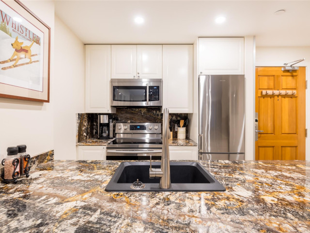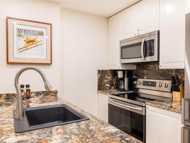 Exceptional ski-in/ski-out opportunity at The Aspens on Blackcomb! Aspens 116 is a top revenue-producing property, ideally positioned in a prime, quiet location within the building while offering effortless access to the Blackcomb Gondola and the incredible valley trail system. The gym, pool, and hot tubs are conveniently located just down the hall. A comprehensive remodel completed in December 2019 features new appliances, updated cabinetry, custom granite and tile work, plush carpeting, and recessed dimmable LED lighting throughout. The spa-inspired walk-in shower includes a built-in bench and its own toe-kick heating system for ultimate comfort. Unwind on your spacious private deck, surrounded by a peaceful forest setting — perfect for afternoon BBQs any time of the year. The couch pulls out to a Queen size bed so lots of room for a couple of guests. Traveling with a furry friend? The Aspens welcomes pets for owners only. Savvy buyers already know that The Aspens is one of Whistler's premier buildings for strong fiscal management and outstanding owner satisfaction. Even better, hot water, electricity, gas, cable, and internet are all included in the monthly HOA fee. Aspens 116 is a five-star Whistler investment. These first floor units rarely come up for sale! Contact us today for more information or to schedule your private showing.