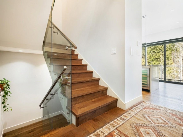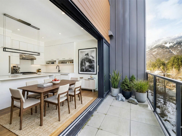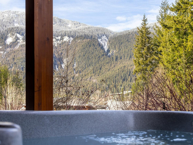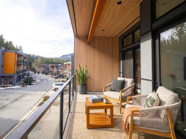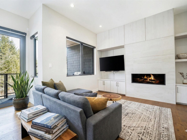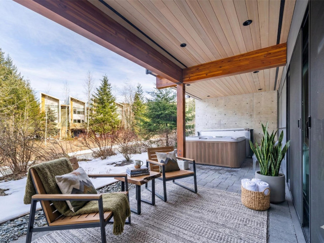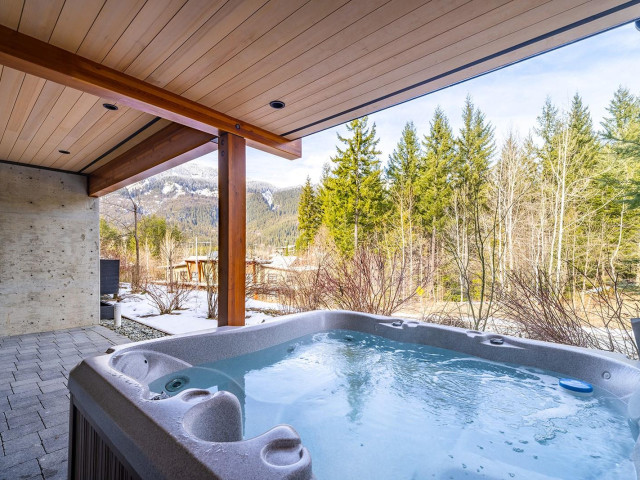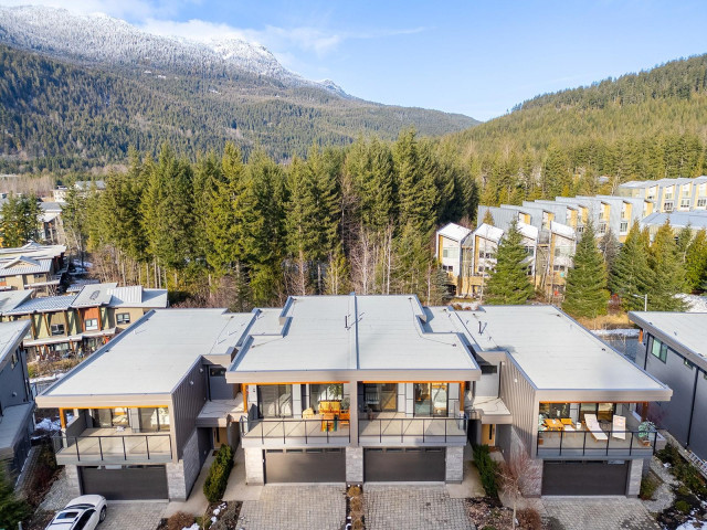 Beautiful contemporary townhouse in the sought-after Basalt development at Cheakamus Crossing. This 4-bedroom/Flex/Media room, 3.5 bathroom home offers radiant in-floor heating throughout, wide plank oak flooring, high ceilings and abundant natural light. The open concept living space features a gourmet kitchen with Sub-Zero fridge, Wolf range, wine fridge and quartz waterfall countertops, flowing into a cozy living area with gas fireplace. Enjoy mountain living with a private hot tub deck, spa-inspired primary suite with a walk-in closet and ensuite, plus a large lower flex/media room or bedroom with a steam shower. Double car garage with built-in storage. Steps to trails and minutes to Whistler Village. **Some photos have been staged with AI due to the tenancy in place.