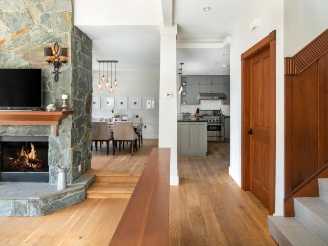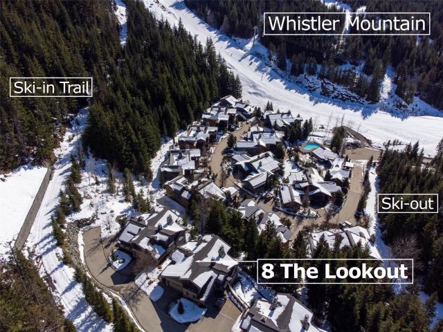 Perched on the side of Whistler Mountain, this stunning 4-bedroom, 2.5-bathroom townhome offers true ski-in/ski-out access and breathtaking views of Whistler's peak. Welcome to the pinnacle of mountain living at 8 Lookout at Taluswood. This beautifully appointed mountain retreat features an open-concept main floor with vaulted ceilings, hardwood flooring, heated tile in key areas, and a chef's kitchen outfitted with granite countertops, a Thermador gas range, and a Sub-Zero refrigerator. Perfect for entertaining, the living space opens onto three private decks - including one with your own private hot tub, ideal for relaxing after a day on the slopes. Upstairs, the spacious primary suite offers a walk-in closet, a luxurious soaker tub, and a separate glass shower. With unlimited owner use in a nightly rental zone, this property offers the flexibility to enjoy personally or generate rental revenue. Experience elevated mountain living at its finest. No GST.