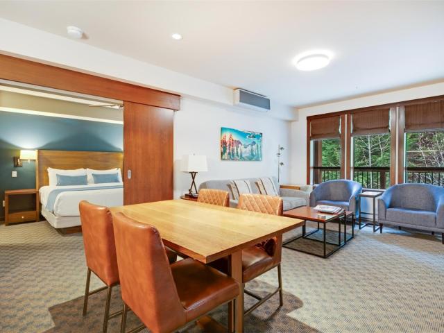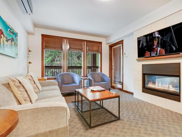 Escape to the ultimate Whistler retreat in this modern, pet-friendly 2-bedroom quarter-share condo, uniquely positioned as a coveted end unit facing the serene forest and rushing creek. This hassle-free ownership model grants you one week of use every four weeks, with the 2026 calendar featuring the highly sought-after Christmas through New Year's rotation. Tucked away on the quiet side of the building, you'll enjoy seamless access to a year-round heated pool, hot tub, gym, and private ski locker, all while being steps from world-class skiing and biking. With the HOA covering all expenses and professional rental management in place, you can focus entirely on the mountain lifestyle while the details are handled for you.