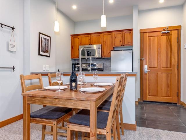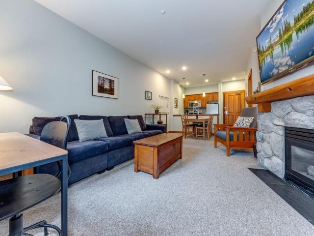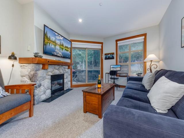Experience the ultimate Whistler lifestyle at Lost Lake Lodge, a premier Blackcomb Benchlands address. This 570 sq. ft., 1-bedroom, 1-bathroom ground-level condo offers privacy and easy access, overlooking peaceful forested grounds. Completely updated unit featuring upgrades to the kitchen and bathroom, appliances (including in-suite washer and dryer), lighting, carpet and tile. Relax by the cozy gas fireplace in the open living area or on your private balcony after a day of adventure. Building amenities include a year-round heated outdoor pool, hot tub, exercise room, underground parking, complimentary village shuttle, and on-site professional management. Quiet location, yet steps from Lost Lake with year-round trail network and ski out option to your door. With nightly rental privileges, unlimited personal use, and no GST, this condo is ideal as a residence, weekend getaway, or investment property.