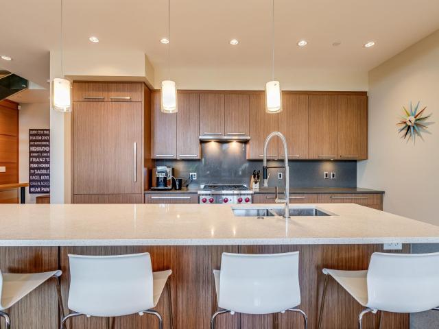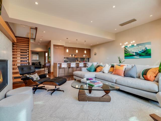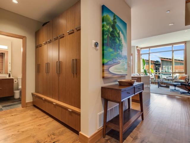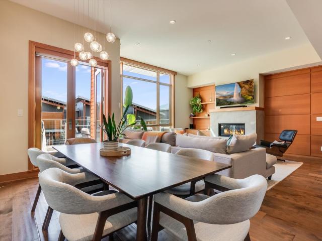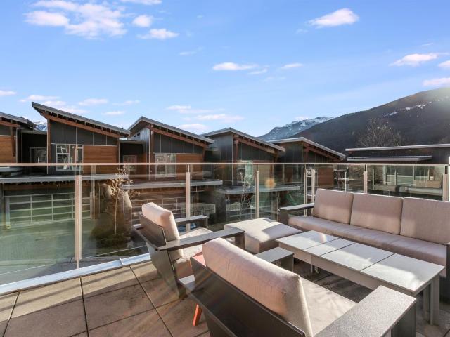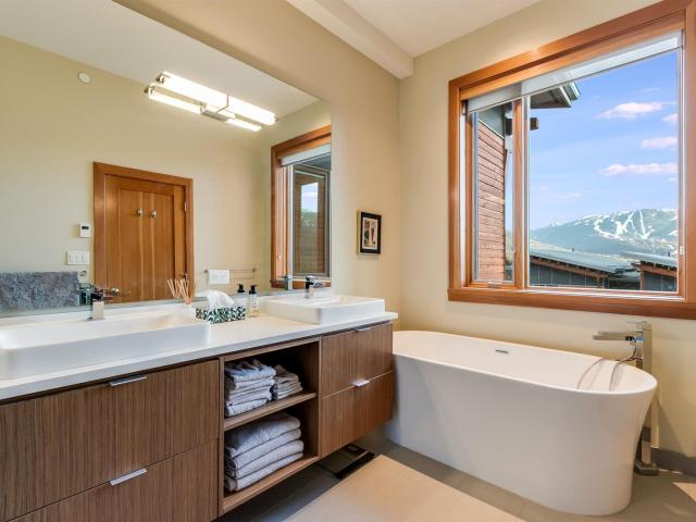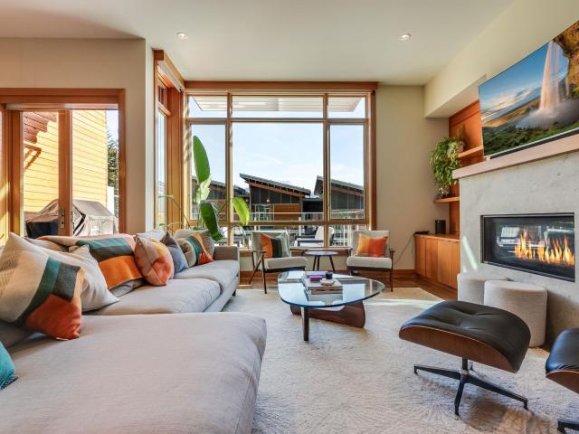 This sophisticated Red Sky townhome epitomizes contemporary mountain luxury, boasting a south-facing orientation that invites natural light from dawn to dusk. The residence features three spacious bedrooms—each with a private ensuite—and a versatile family room that easily serves as a fourth bedroom. Meticulously crafted with natural wood, stone, and bespoke millwork, the interior offers a seamless blend of elegance and comfort, highlighted by high ceilings, a Control4 smart home system, and heated flooring. Residents can enjoy panoramic mountain views from the expansive outdoor deck or retreat to the private rear patio and hot tub. Built to exacting green standards, the property also includes an oversized garage and exclusive access to the Baxter Creek Residents’ Club amenities, including a saltwater pool and fire pit, making it an unparalleled choice for a discerning full-time resident or a premier weekend retreat.