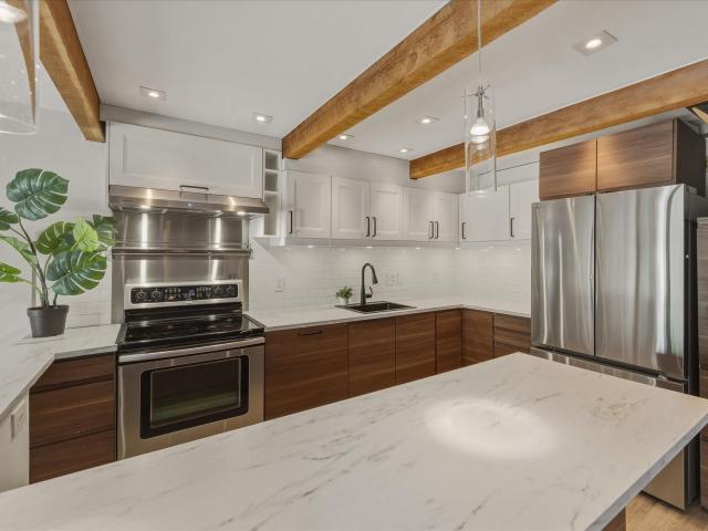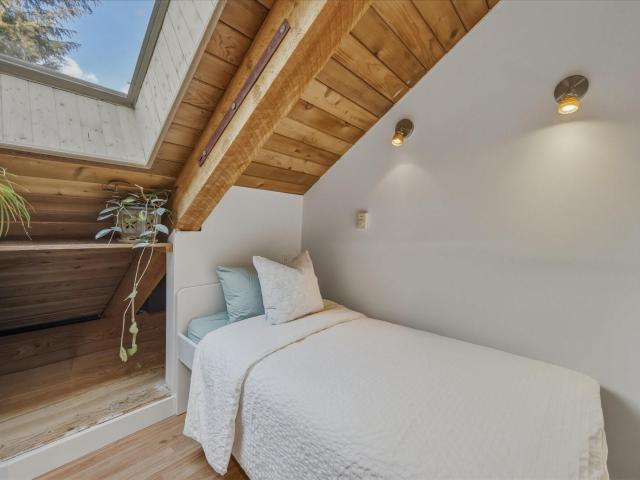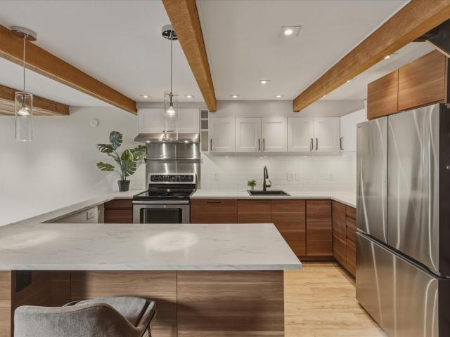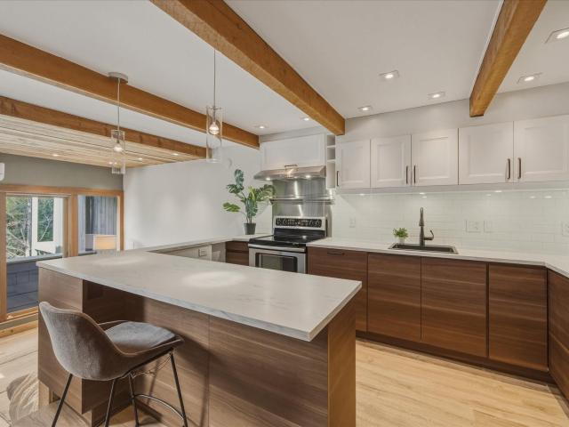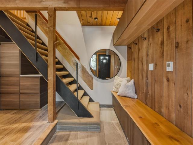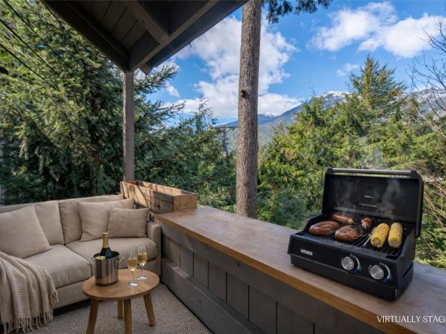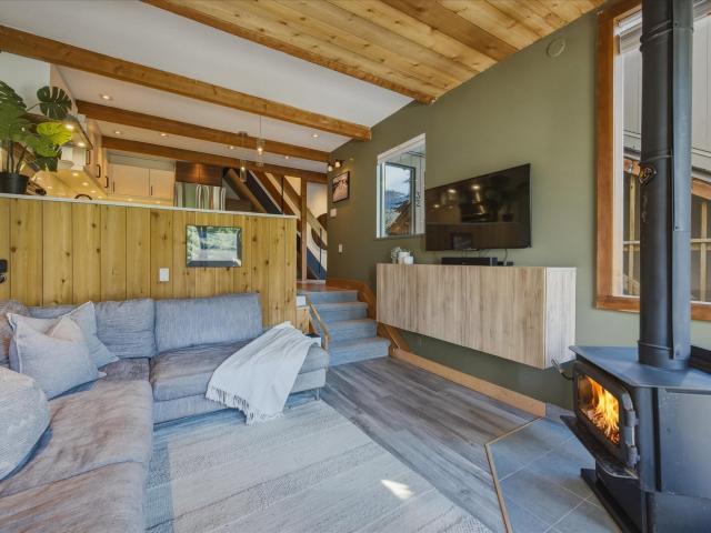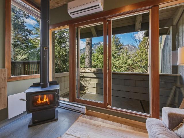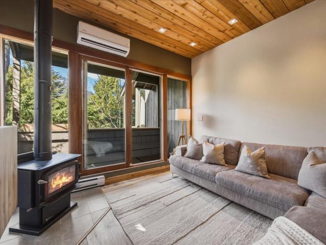 Whistler, without the friction. First time offered in over 30 years. An Arthur Erickson–designed townhome, reimagined for modern mountain living—connected by a 5-minute trail straight into the heart of Creekside. This is where Whistler becomes effortless. No planning. No driving. Just grab your gear and go. Views of Sproatt Mountain anchor the main living space beneath vaulted ceilings—morning coffee on the deck, summer BBQs at sunset, evenings by the wood stove after a day exploring. Inside, exposed beams and a calm, natural palette set the tone, while the open-concept kitchen is intentionally designed to connect without compromising a clean, efficient space for cooking. Function meets comfort throughout: Lutron RadioRA 2 lighting delivers full dimming control, paired with integrated electronic climate control, an efficient heat pump with in-unit mini split A/C throughout, and heated floors in the entry and bathroom—all working together to deliver dialled, year-round comfort. Below, 345 sq ft of dedicated gear space—built for bikes, skis, and tools. A true workshop with easy access and generous volume—a rare feature. Walk or bike to the gondola—no parking, no delays—straight into world-class skiing or downhill mountain biking. Evenings shift to après at Dusty’s or dinner at Rimrock, Red Door Bistro, Creekbread, or Mekong. Nita Lake Lodge offers a refined place to dine or recharge, with year-round access to Nita and Alpha Lakes—swimming, SUP’ing, cold dips, skating, or hockey depending on the season. Whether full-time or a weekend escape, this location delivers. Live connected. Move freely.