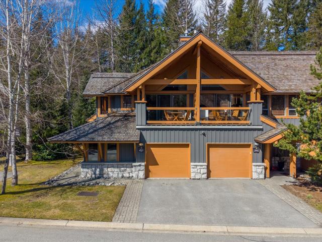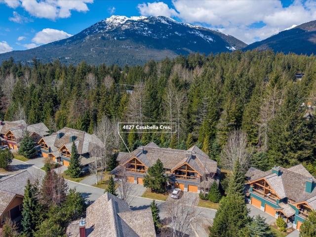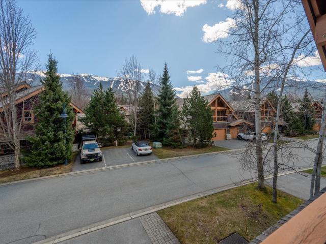 Discover this stunning corner townhome in Montebello boasting breathtaking views of Whistler/Blackcomb Mountains, just a short stroll to Whistler Village. This exceptional unit features 3 bedrooms, a den which can be a 4th bedroom, 3 full bathrooms, plus a powder room. Enjoy the rare benefit of a garage for secure parking and ample storage for outdoor gear, as well there is extra parking nearby. After a day of adventures, unwind in your private hot tub surrounded by serene greenspace. Additional highlights include air conditioning and a cozy gas fireplace for year-round comfort. Zoned for nightly rentals, this home is perfect as a vacation retreat or primary residence. GST paid.