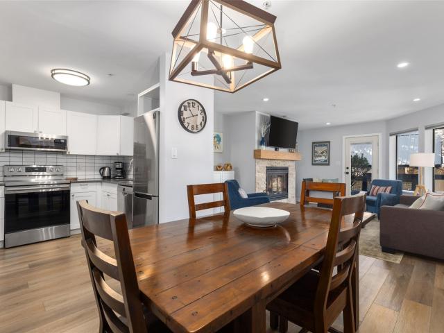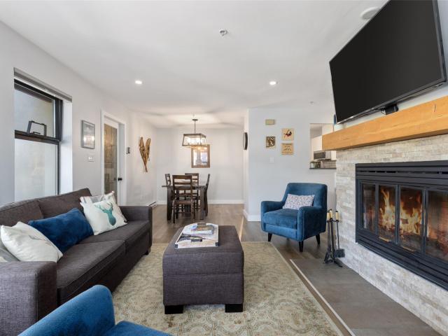 Mountain living meets modern luxury in Whistler's Blackcomb Benchlands. This renovated 2-bed, 2-bath ground-floor townhome at Snowberry blends mountain charm with sleek sophistication. The kitchen features quartz counters, s/s appliances & flows into a bright living space with large windows capturing the lovely mountain view. The wood-burning fireplace sets the scene for cozy winter nights together, while the large deck captures the last of the summer sun as it sinks behind the mountain—the perfect backdrop for long afternoons spent with family & friends. Enjoy the ease of in-suite laundry, secure parking & free shuttle on your doorstep. The location is unbeatable: steps from the lifts, Fairmont Golf Course, Lost Lake & the Valley Trail network. Turn-key & ready for the discerning buyer.