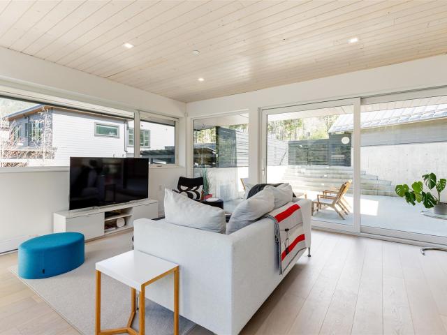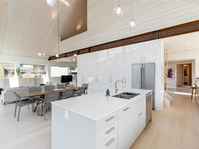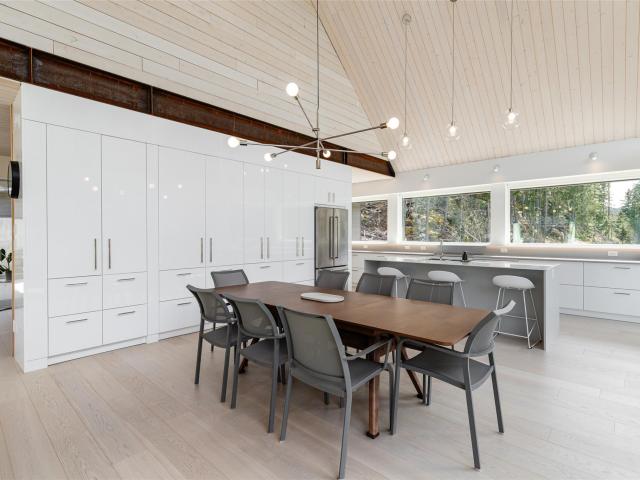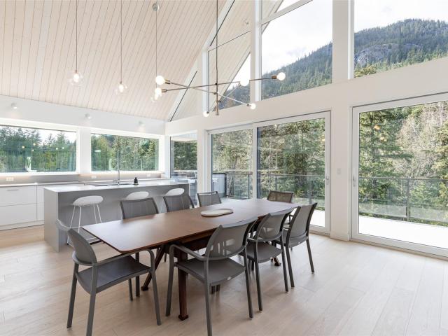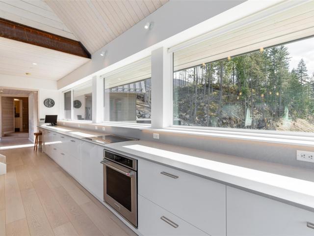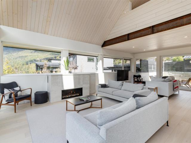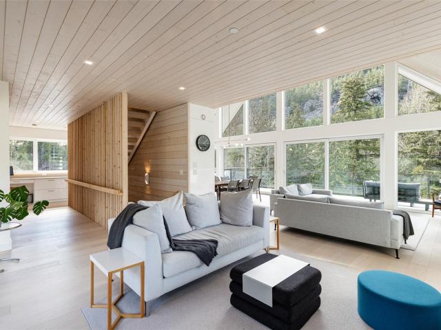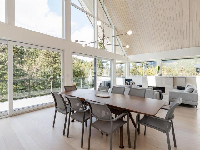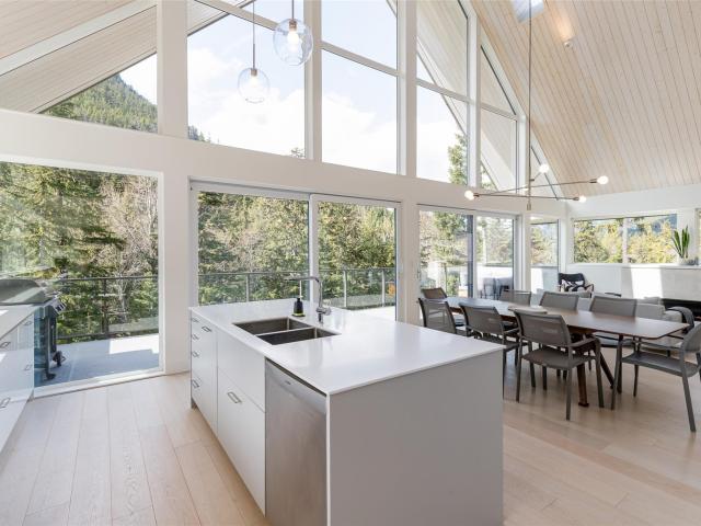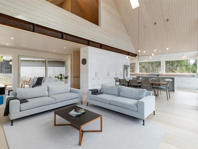 Scandinavian-inspired riverfront estate on over an acre, offering striking modern design and a coveted riverfront setting. The 5-bed, 3.5-bath main home features soaring ceilings, expansive windows, and a refined open-concept layout filled with warm afternoon light and stunning mountain views. Designed for effortless entertaining and everyday comfort, the home showcases clean lines and elevated finishes throughout. A beautifully finished 2-bed coach house adds valuable flexibility for guests, extended family, or income. A rare chance to own a distinctive, design-forward property in the exceptional WedgeWoods neighbourhood.