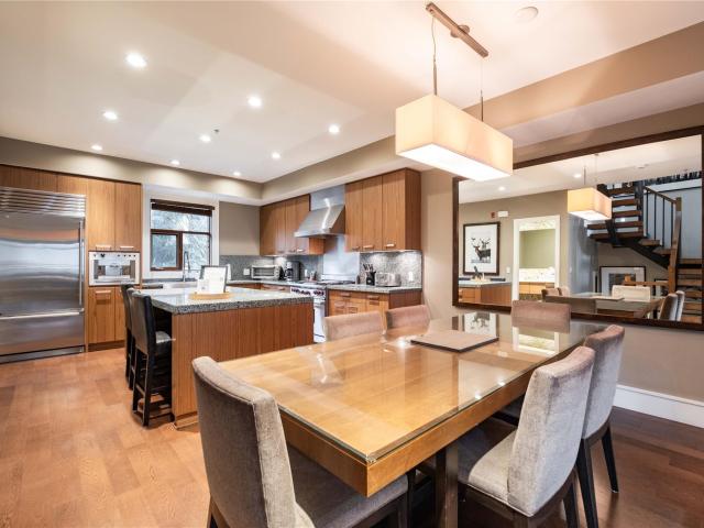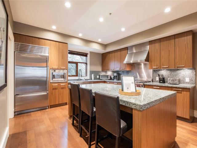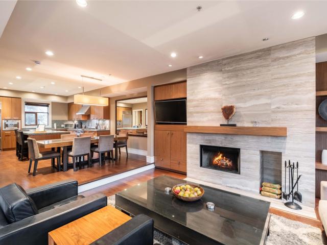 Fitzsimmons Walk in Whistler’s White Gold neighbourhood offers the perfect blend of mountain living and West Coast contemporary design. This 2009 Georgie Award-winning townhome features 2,831 sq ft, 4 bedrooms, and 3.5 bathrooms with a spacious, family-friendly layout. Enjoy a gourmet kitchen with oversized granite counters, high-end appliances, and an open-concept living and dining area. Highlights include a media room with bar, steam shower, hot tub, and three fireplaces, plus an inviting outdoor living area with yet another fireplace. The primary suite features a double-sided fireplace, soaker tub, heated marble floors, and mountain views. Walk to Whistler Village, trails, and Nesters Market. Phase 1 zoning offers excellent flexibility for lucrative nightly rentals or personal use. This property includes a unique separate storage area with substantial additional storage for all your Whistler recreational equipment!