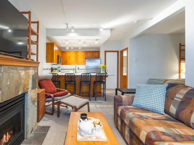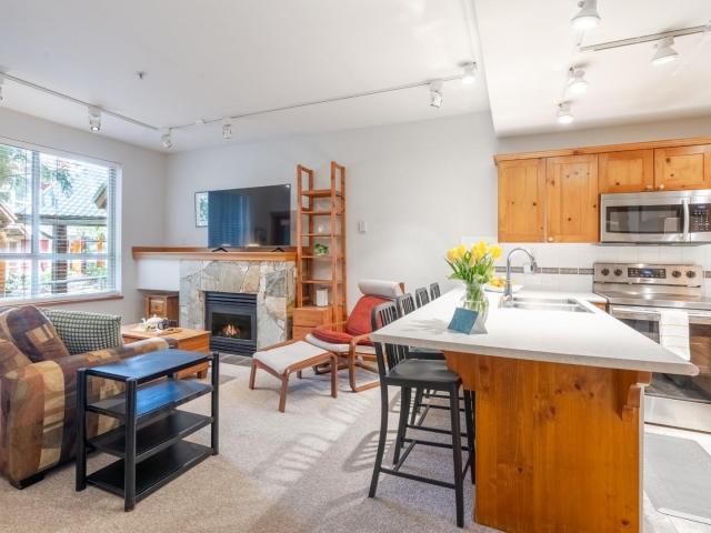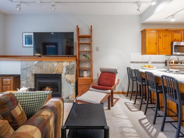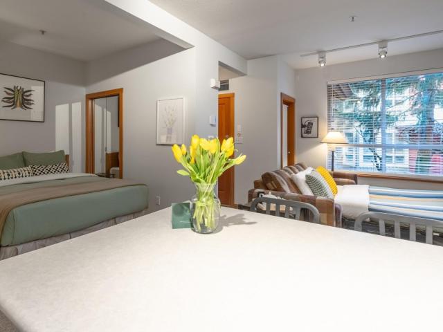 Located in the quiet Symphony complex in the heart of Whistler Village, this sensational ground-floor townhome offers an effortless walk-everywhere lifestyle just steps from dining, shopping, and gondola access, with secure underground parking The 478 sq. ft. layout is thoughtfully designed, featuring a full kitchen with updated appliances, in-suite laundry, a queen sofa bed for flexible use, and a well-defined sleeping area that enhances livability beyond a typical studio. Zoned for nightly rentals, the property offers strong income potential when not in use, providing flexibility as both a personal retreat & investment. Residents also enjoy a landscaped common area with outdoor hot tub, ideal after a day in the alpine. A versatile Whistler Village opportunity in a quiet central setting.