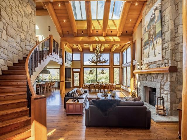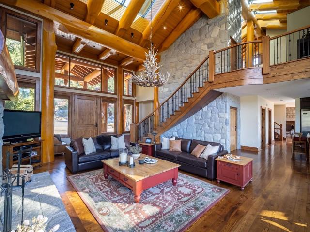 The Apex of Alpine Living is here. Perched in the exclusive Sunridge Plateau—Whistler’s most coveted luxury complex in walking distance to Whistler village center—this 7,000+ square-foot masterwork redefines the mountain estate. While many alpine homes retreat into dark, heavy timber, 3803 Sunridge Place embraces the light. Architecturally designed to prioritize volume and transparency, this home offers a sophisticated, open-concept experience that connects you directly to the sweeping valley vistas. The massive structural golden cedar logs frame the soaring ceilings. The expansive glass walls create a gallery-like atmosphere that remains warm and inviting. Every detail is intentional, from the seamless flow between the grand entertaining spaces to the thoughtfully separated bedroom quarters. A full-height elevator services all three levels. The massive 4-car garage meticulously organized to house your entire fleet—from powder skis and mountain bikes to watercraft—ensuring you are always ready for the next adventure. Ski-in trail is within steps at this cul-de-sac.